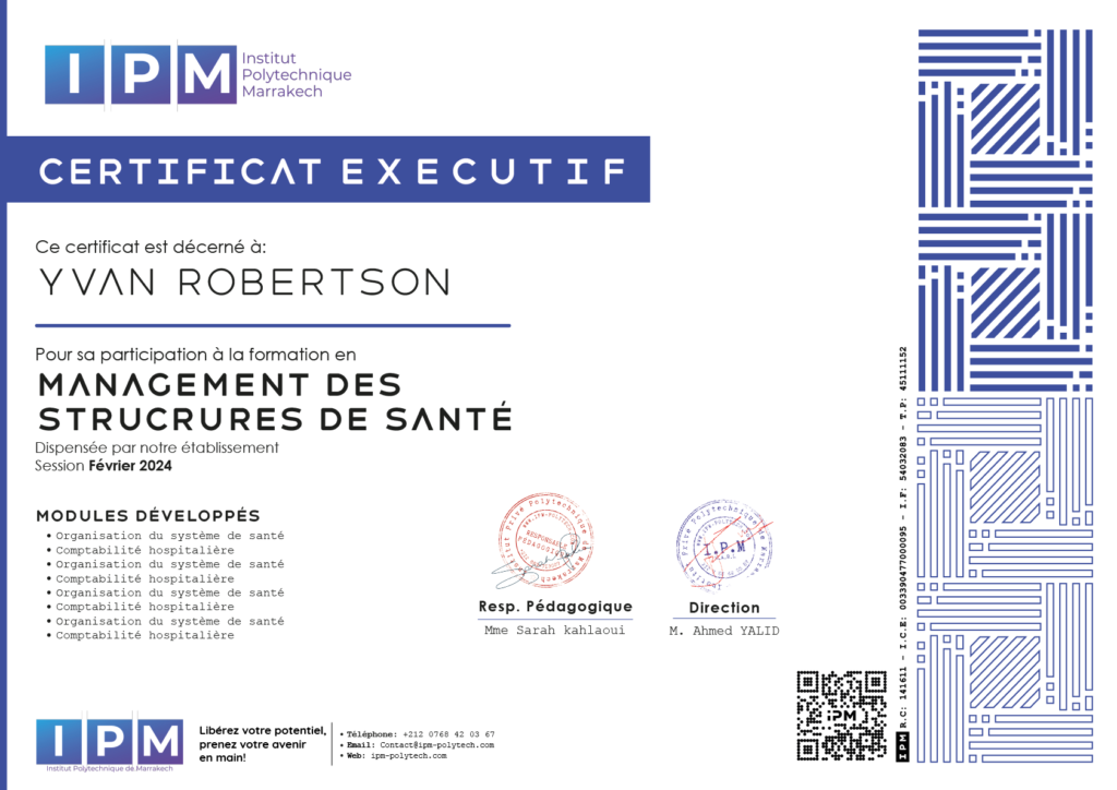 IPM est un institut de formation présentielle et distancielle, existant depuis plus de 10 ans, et dont le siège est à Marrakech – Maroc. IPM est qualifié à l’international et dispense des programmes de formations certifiants et diplômants au Gabon et sur l’ensemble du continent africain.